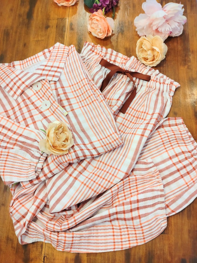 Narueナルエー(na52402)シュークリームダブルガーゼチェック柄パジャマ:M-Lサイズ
