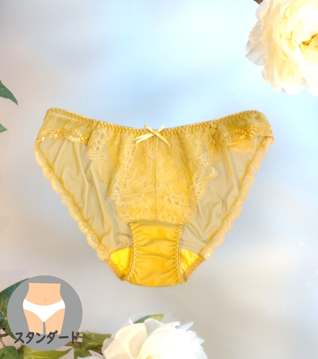 チェスニービューティーより上品なレースの華やかさを持つシリーズ「クイーン」。 カラーは「テンダーイエロー」。 優しいレモンのテンダーイエローとホワイトレースの組み合わせ。 ふわふわしたようなまるで天使の羽のような雰囲気を出してくれるシリーズ。 透け感もとても素敵で可愛さの中にセクシーさを出してくれるから とても素敵な女性として楽しんでいただけます。 チェスニービューティーのショーツなので女性らしく美しい ハイレグカットのショーツ。 足長に見せ、またリンパを押さえないので足さばきも良いです。 ヒップは柔らかメッシュ生地。 フロント内側はもちろんあて布を施しております。