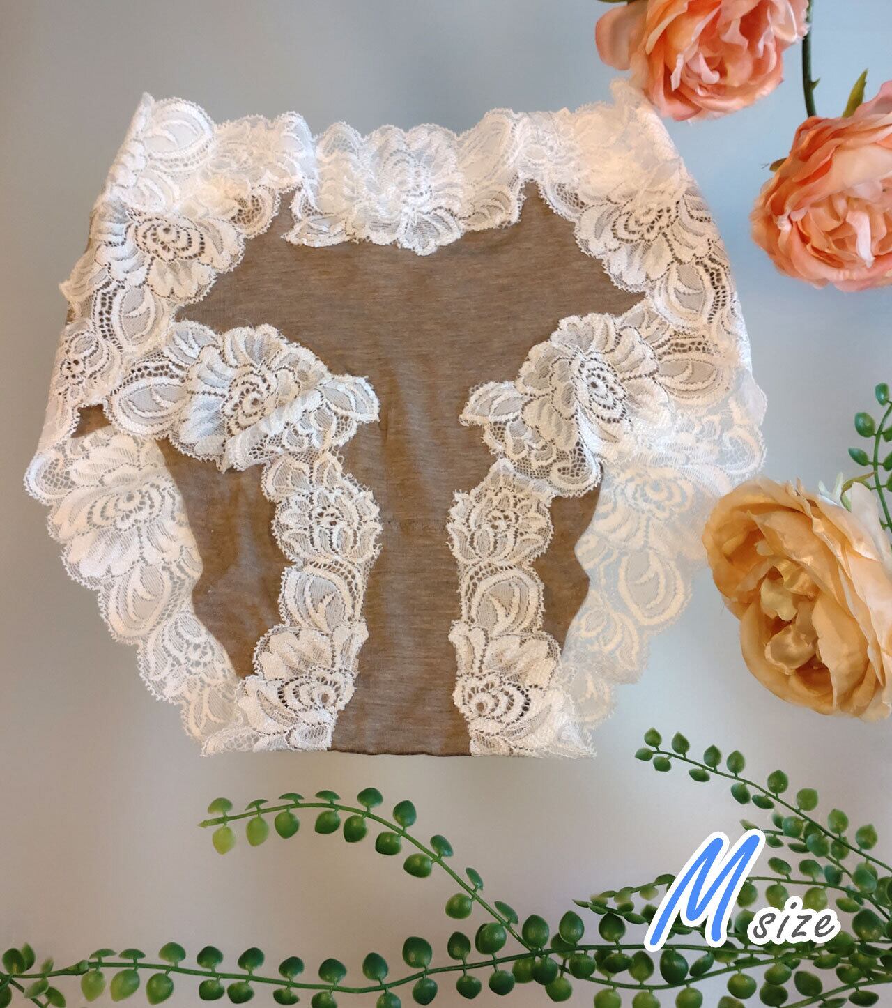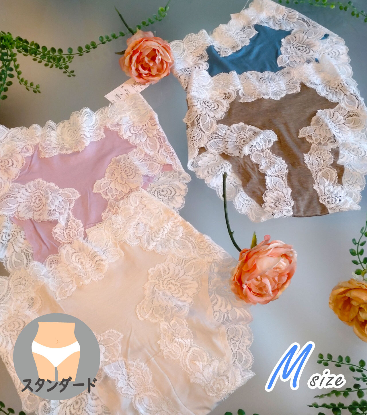 フィット感のあるモダール生地で伸縮性も高く、さらに幅広のモチーフレースを使用していますのでヒップアップ効果も♪