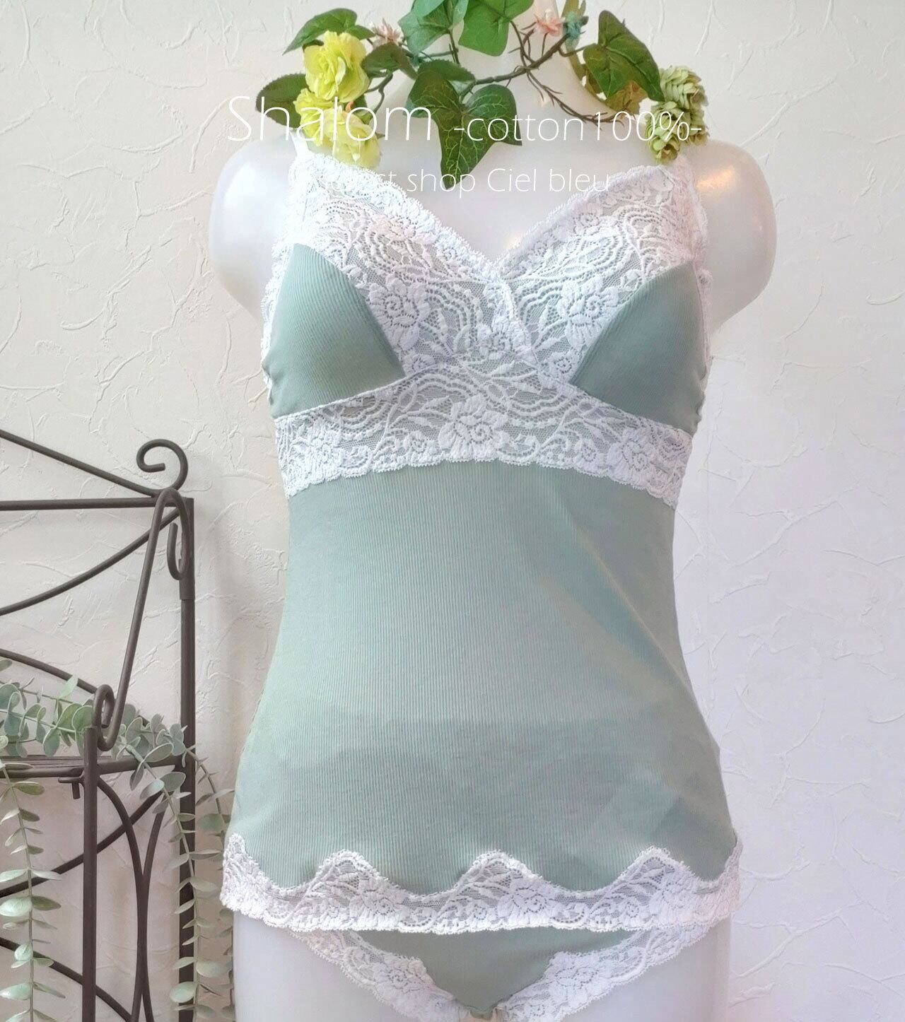 Shalomシャローム(M寸) 柔らかコットン100%ブラキャミ:sy93601,93603M