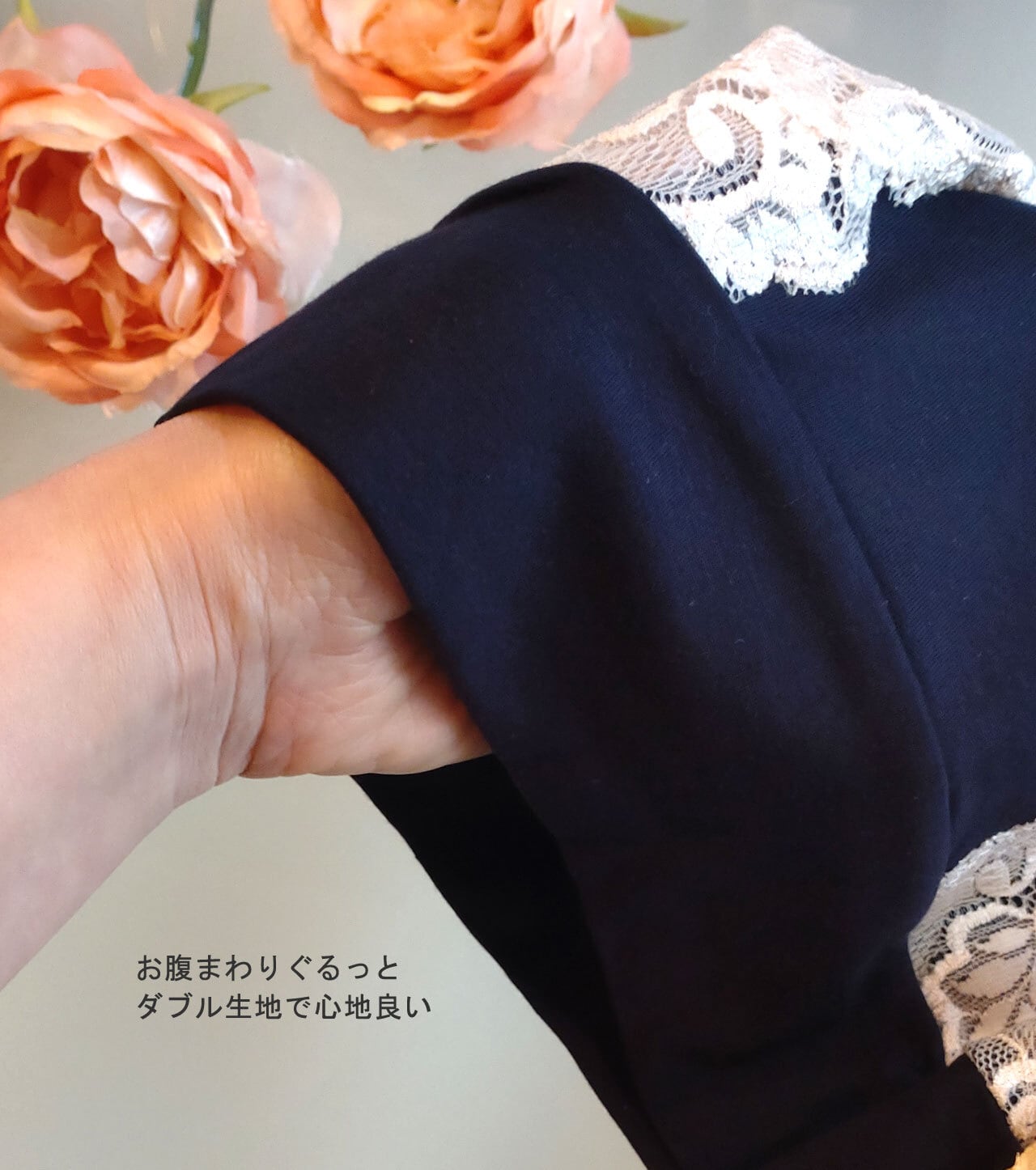 足繰りの幅広レースが締め付け感のなく心地良さがあります。