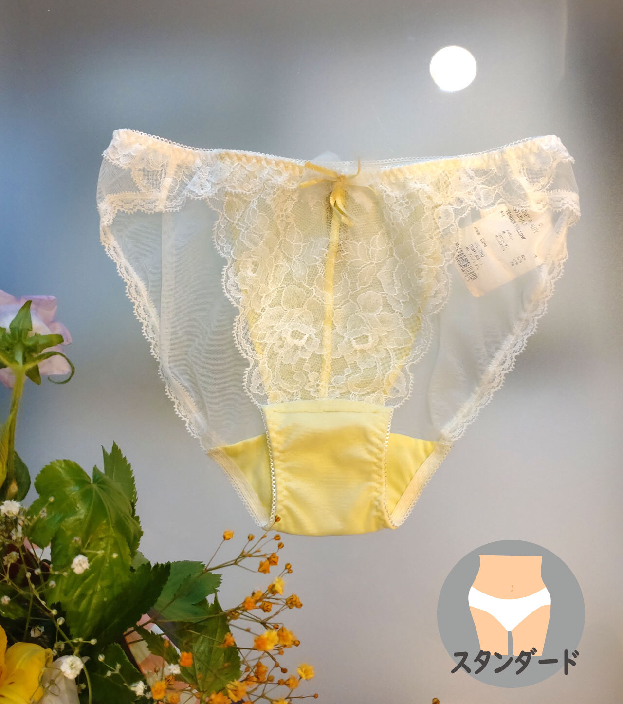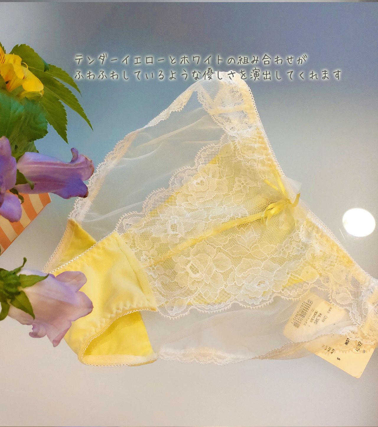 優しいレモンのテンダーイエローとホワイトレースの組み合わせ。