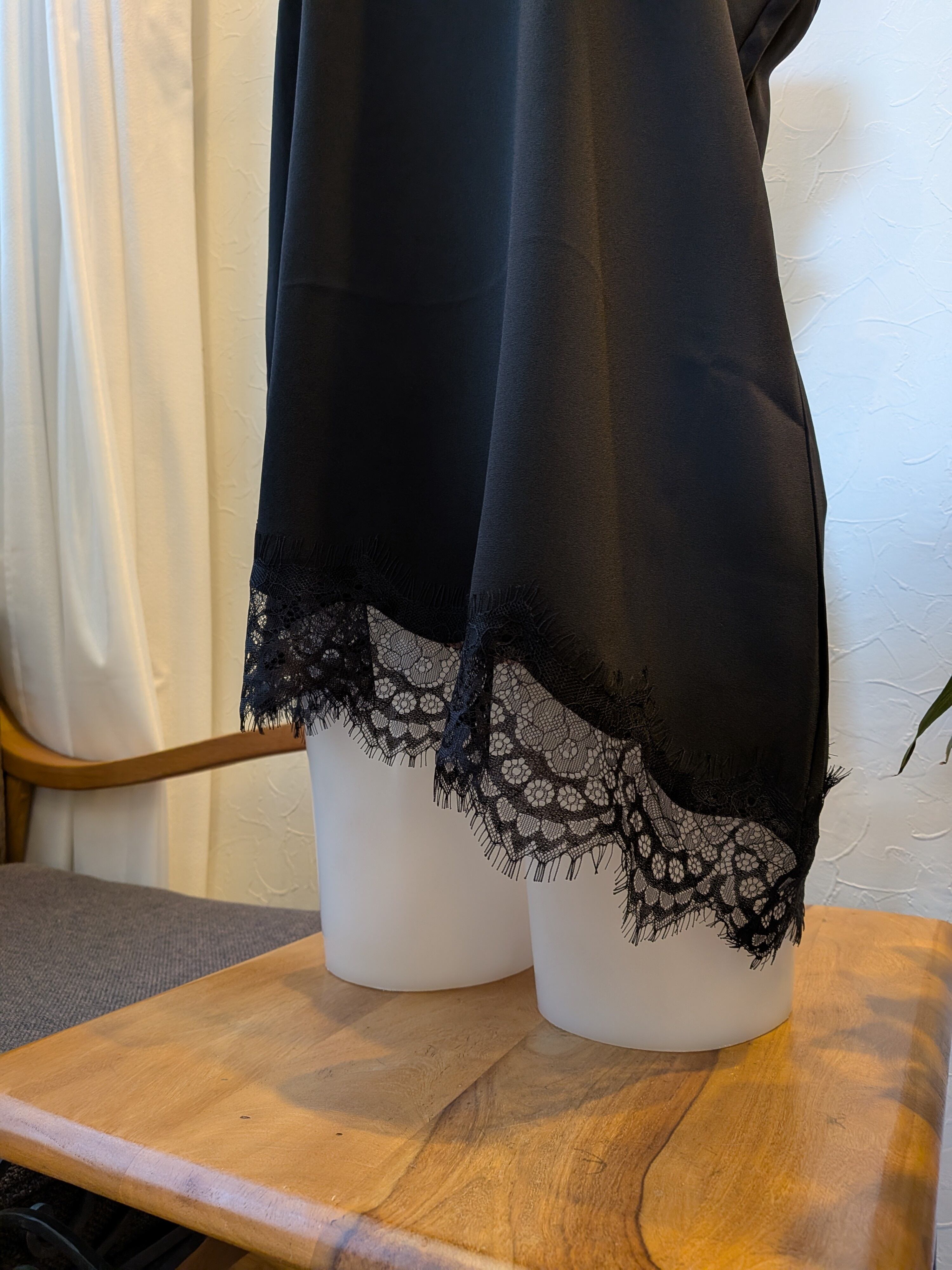 ●着丈 (裾が斜め裁断なので)右側:約65cm、左側:約76cm