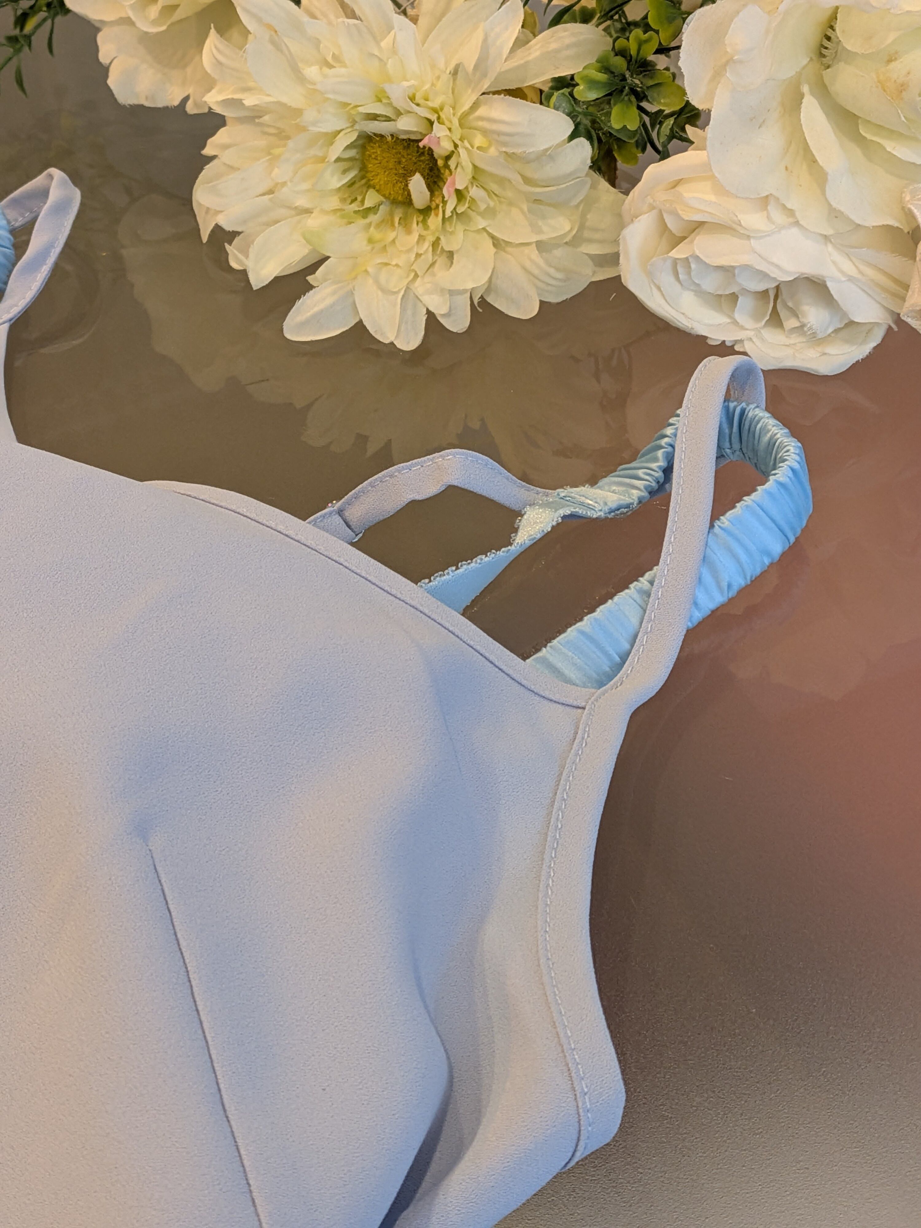 肩ヒモがシルクサテンのブルーなので雰囲気も素敵です★
