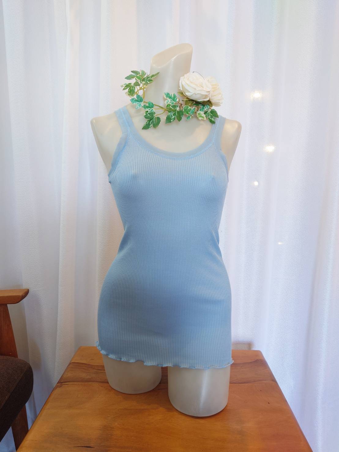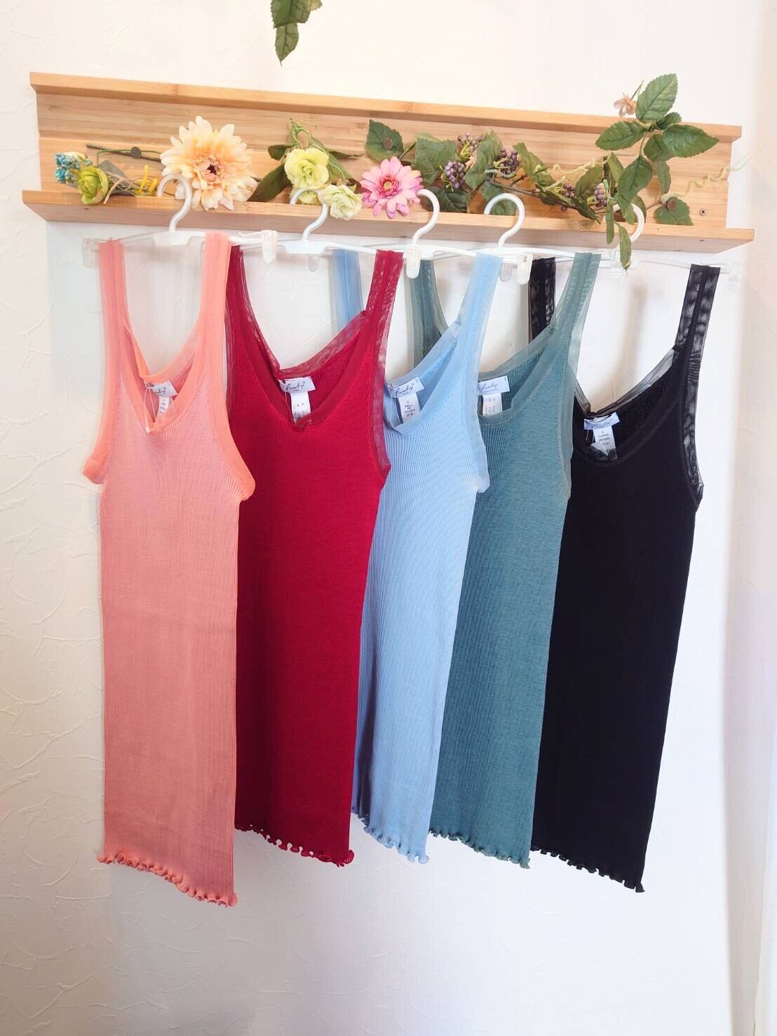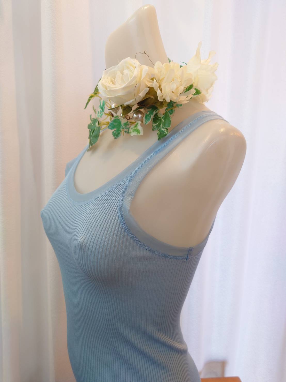 より人気の肩ひもがチュール生地で施されたコットンリブキャミが入荷♪