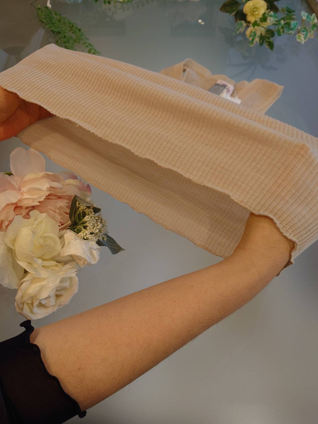 柔らかな伸縮性の高い生地はもとより、このチュールヒモなら春夏のお洋服で見えても良い感じです♪