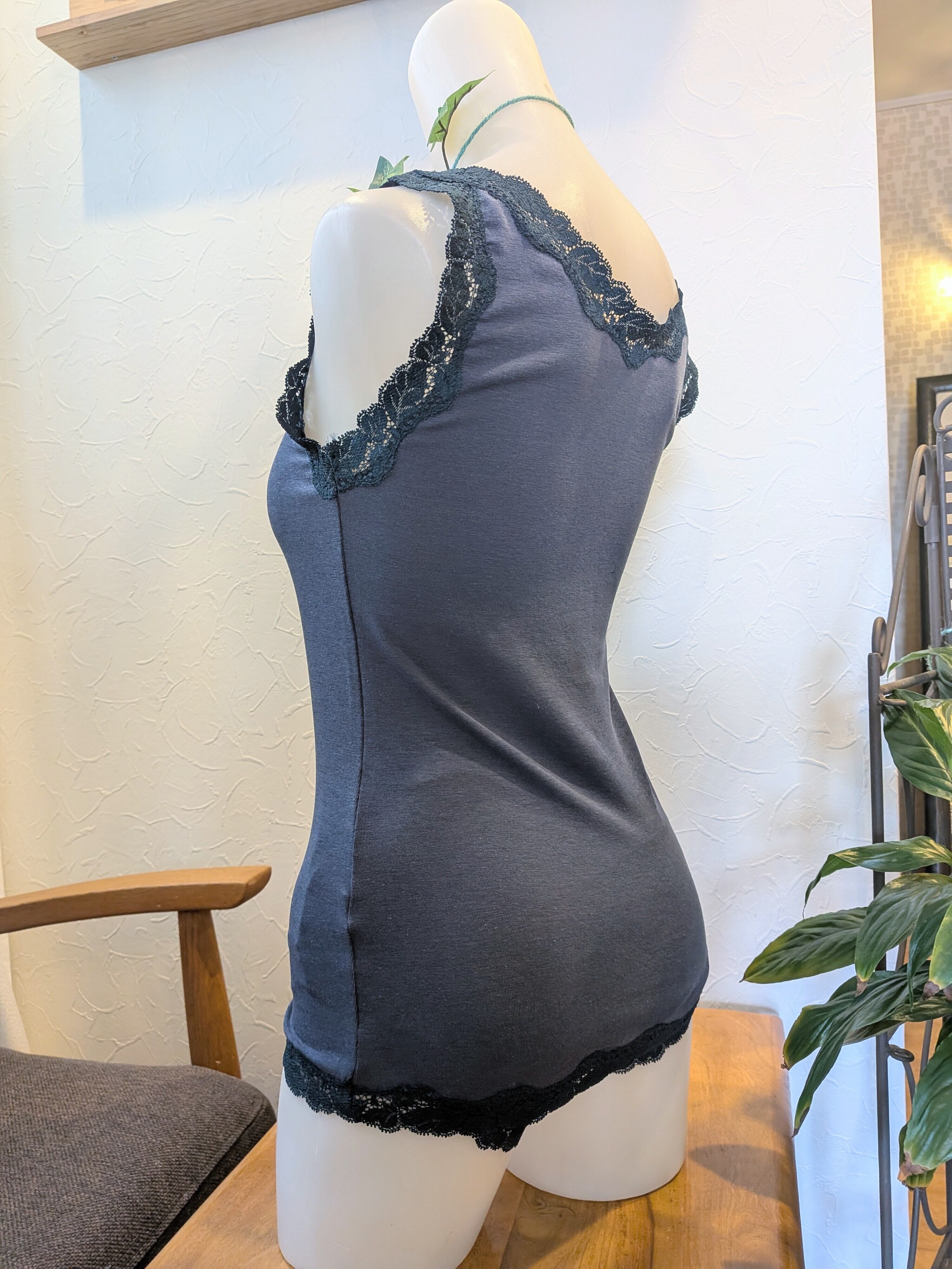 肩ヒモの幅もあるタンクトップタイプで、またVラインなのでお洋服の邪魔もしないからとても使い勝手の良いデザインです♪