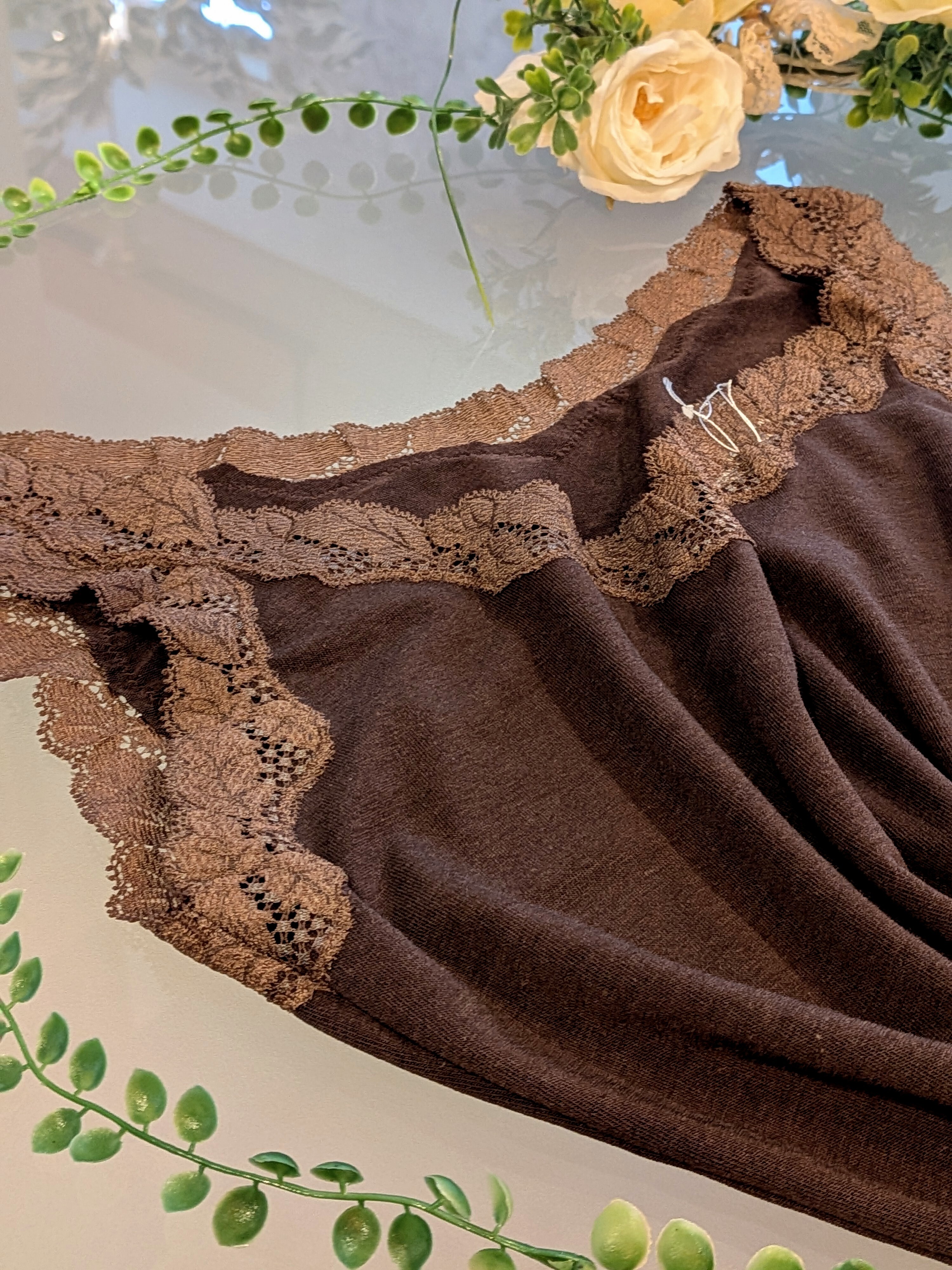 コットン素材やモダール素材などを中心に肌に優しいものづくりをしていることはもちろんのこと、女性の美しさと喜びを忘れない。レースの綺麗さにもこだわりをもって一枚ずつ丁寧にお作りしてます。
