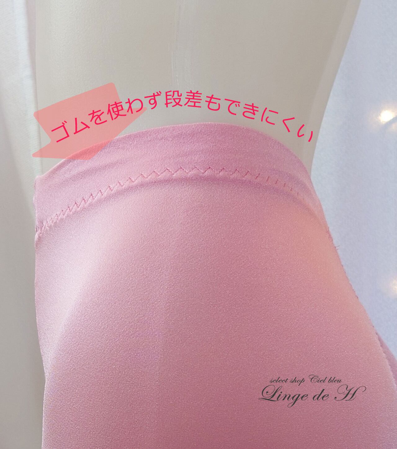 ●ウエスト部分:ゴムを使用していないので締め付けや食い込みの心配がありません。