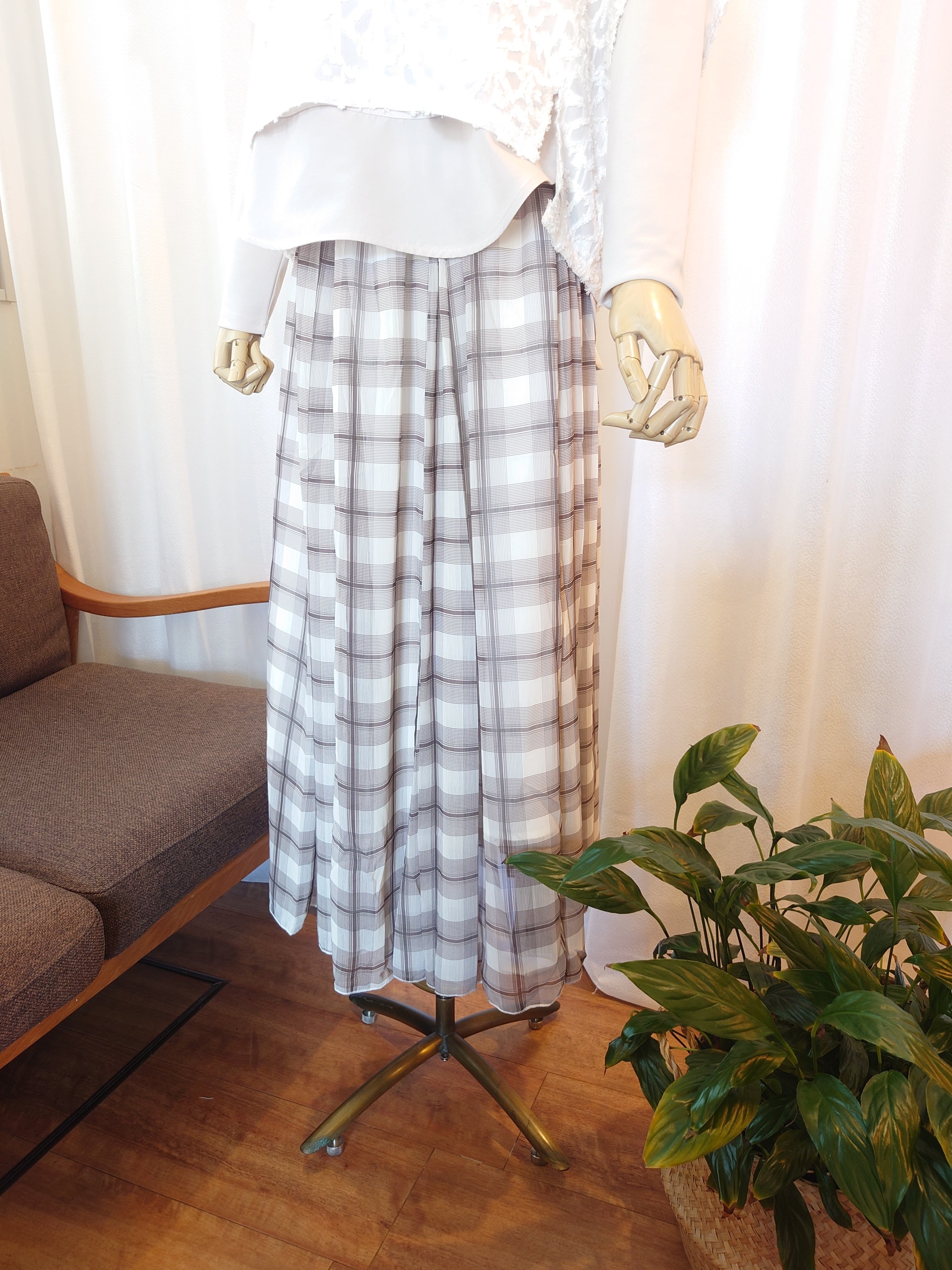 オフホワイトとブラウンのあわいチェック柄も春らしい色使いです。