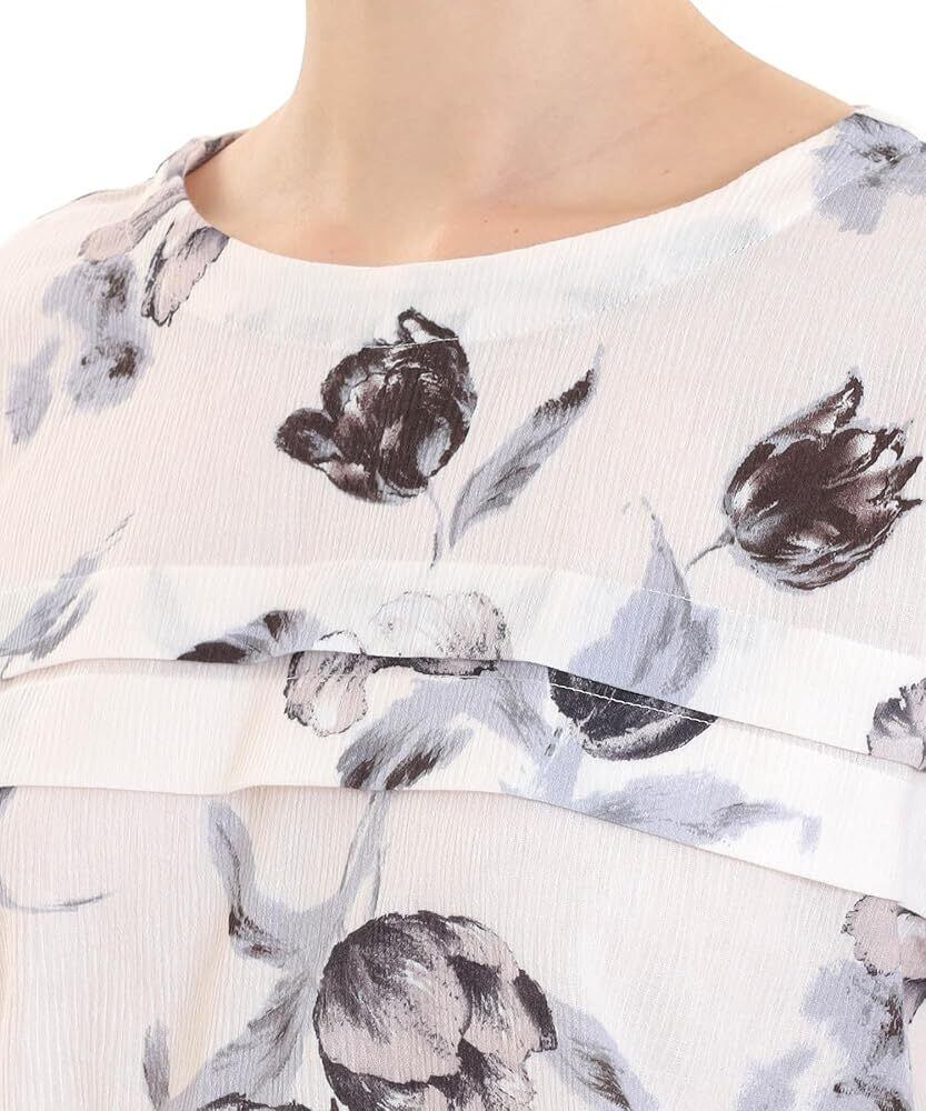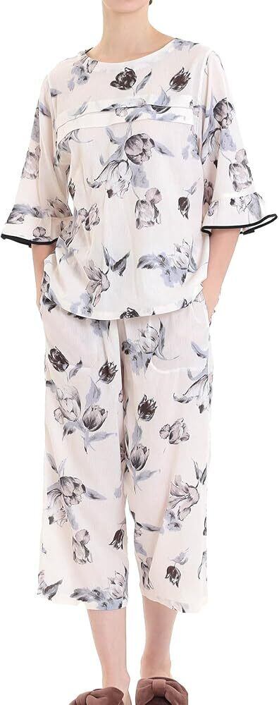 透け感も気になりにくいベージュベースにグレーと黒のチューリップ花柄をあしらっているパジャマタイプ。