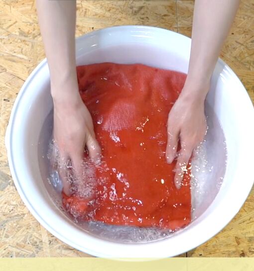 15分つけ置き、そしてそのお水を流すだけ!すすぎをせずに絞って、タオルドライして完成です!