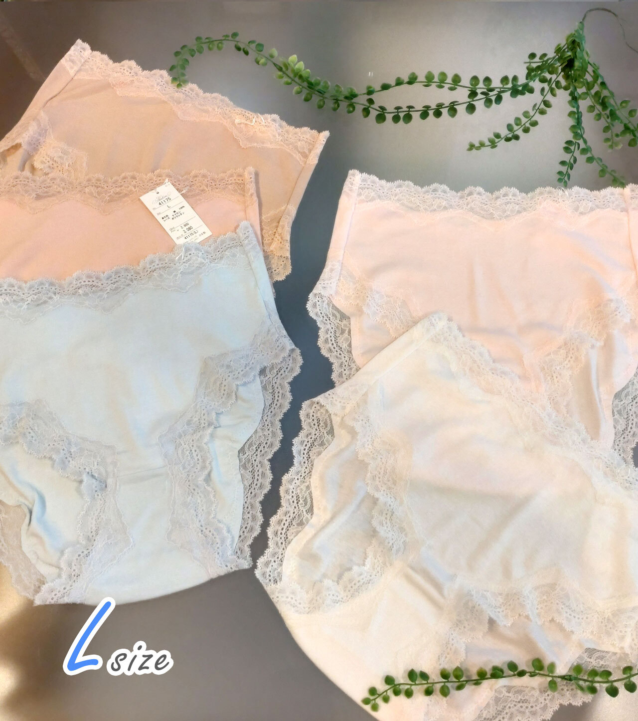 【ShalomシャロームL寸綿100%スッポリカッティングレースショーツ】